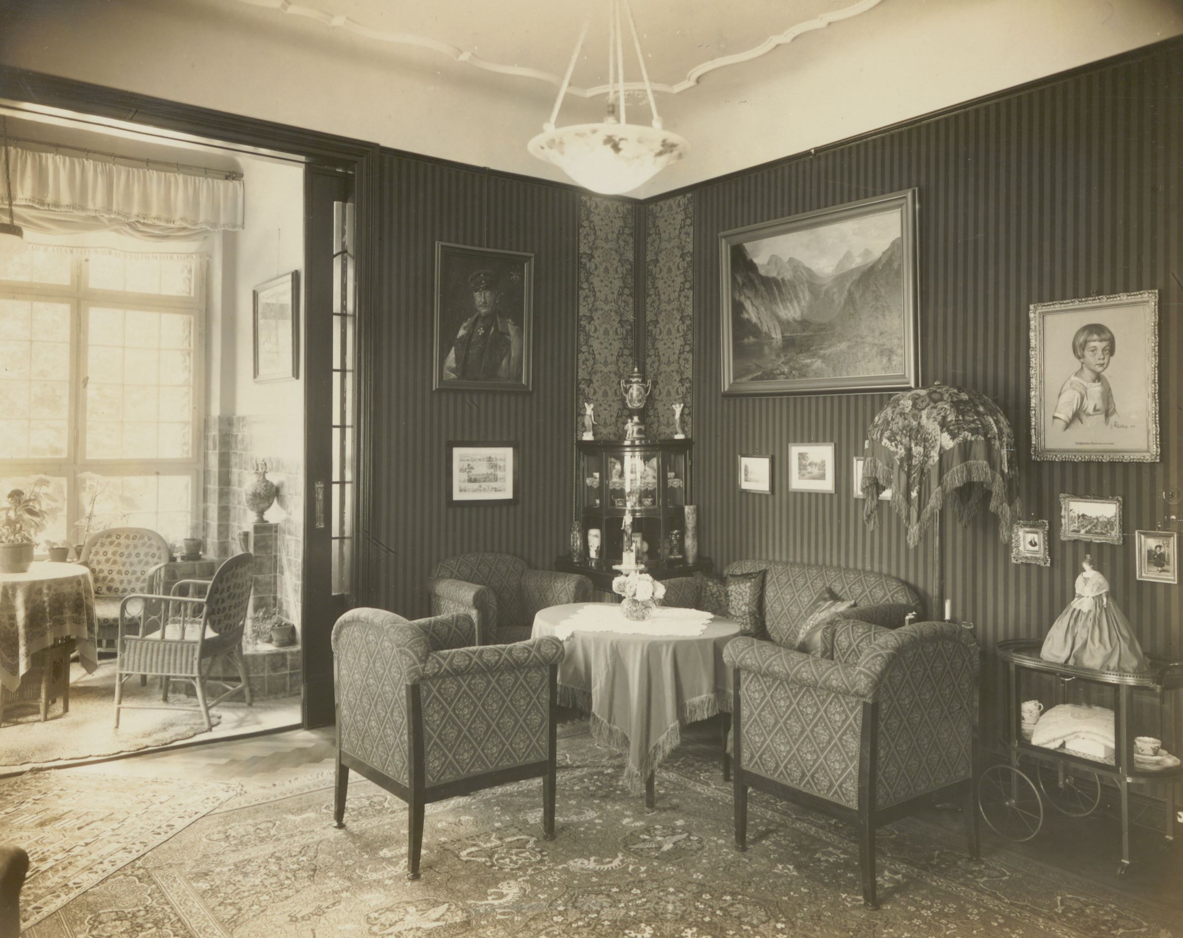 Es ist kein Zufall, dass Fritz von Lindenau (1883–1965) den gleichen Namen trägt, wie das Lindenau-Museum. Der Museumsgründer Bernhard August von Lindenau (1779–1854) war ein entfernter Verwandter Fritz von Lindenaus, deren gemeinsamer Stammbaum sich jedoch bereits Anfang des 17. Jahrhunderts trennte. Fritz von Lindenau nahm diese Verbindung trotzdem zum Anlass, Informationen und kunstgewerbliche Gegenstände zu Bernhard August von Lindenau zu sammeln. Bereits als junger Mann begann Fritz von Lindenau, damals noch Offizier des Altenburger Regiments, Erinnerungsstücke seines Adelsgeschlechts zusammenzutragen. Darunter befanden sich Porzellanstücke, Bilder, Siegel, Bücher und Archivalien, von denen er einige mit Etiketten und Beschriftungen versah. Diese „von Lindenau’sche Familiensammlung“, pflegte er über Jahrzehnte und präsentierte Teile davon unter anderem im Damenzimmer seines Hauses in Berlin Schlachtensee (siehe Abb. 1). Einige dieser Objekte befinden sich heute im Lindenau-Museum.